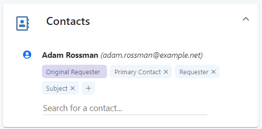 Opcionálisan a jegyet elsőként elbíráló operátor szintén elsődleges kapcsolatként állíthatja be az adott személyt, ha ezt az elbírálása alapján megfelelőnek ítéli. Ha Ön egy másik kapcsolatot jelöl meg ezen kapcsolattípusok valamelyikével, akkor a korábbi személyről eltávolítjuk az adott címkét.