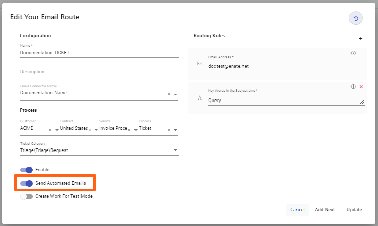 Diese Verhaltensänderung wurde auch im E-Mail-Abschnitt des Builders vorgenommen - beim Einrichten einer E-Mail-Route wurde die Option zur Steuerung des Versands automatisierter E-Mails geändert - standardmäßig werden solche automatisierten E-Mails NICHT versendet. Wenn Sie also möchten, dass automatisierte E-Mails versendet werden, müssen Sie die Einstellung „Automatisierte E-Mails senden" EINschalten.