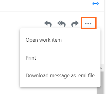 D’autres options sont également disponibles en cliquant sur les ellipses situées à côté des liens de réponse. Elles vous permettront d'accéder directement à l’activité à laquelle l'e-mail se rapporte (en l'ouvrant dans un nouvel onglet), et d’imprimer l’e-mail.