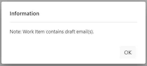 Lorsqu’un brouillon existe déjà pour une activité, le système vous en avertit lorsque vous commencez à rédiger un nouvel e-mail. Vous pouvez alors choisir de continuer à rédiger votre e-mail ou de modifier le brouillon à la place.