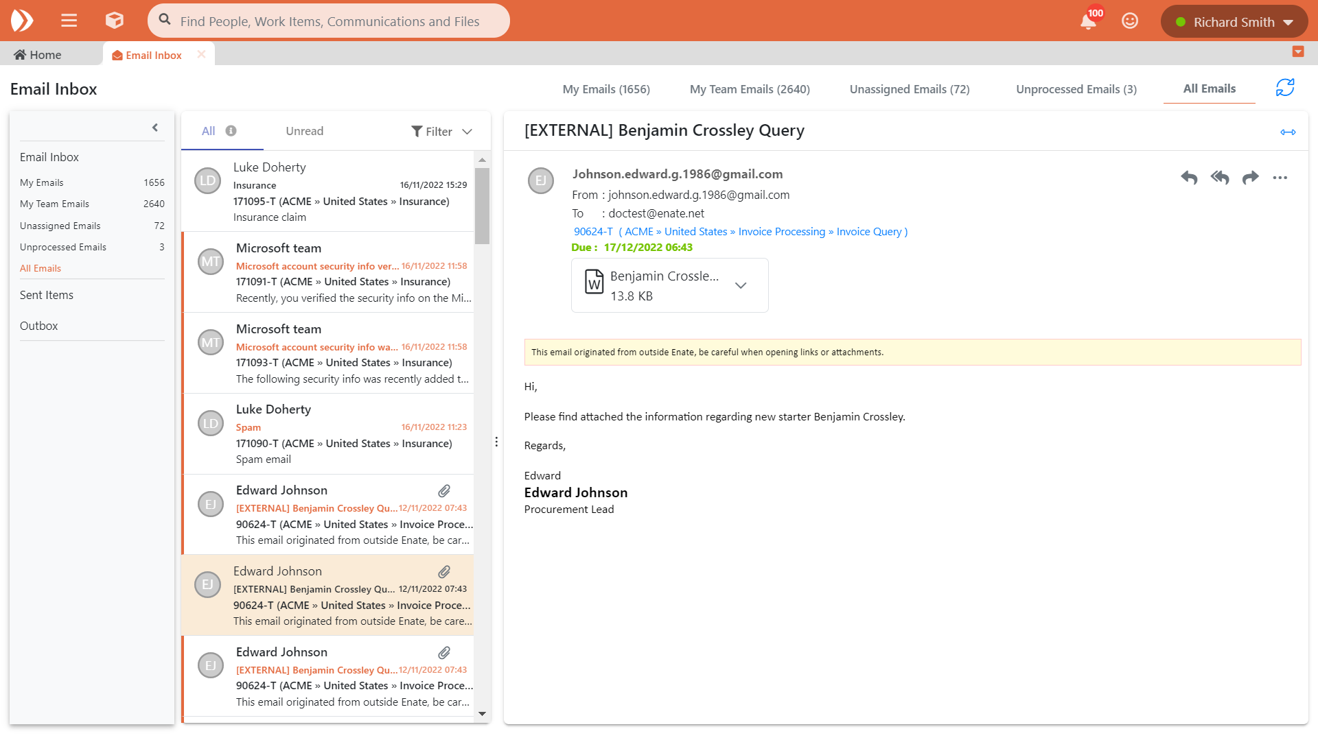 Nous avons ajouté une toute nouvelle section à votre boîte de réception : *Tous les e-mails*. Elle vous permet de consulter tous les e-mails des activités, même les activités fermées, pour lesquelles vous disposez des autorisations.