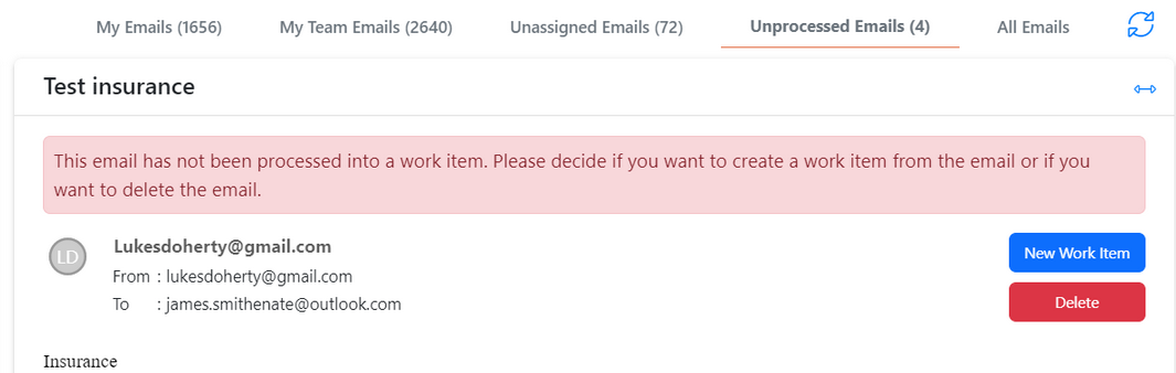 Ha azt veszi észre, hogy rendszeresen fel kell vennie a feldolgozatlan üzeneteket, majd újra és újra ugyanazokba a jegyekbe kell irányítania őket, beszéljen az üzlete adminisztrátorával, hogy létre lehet-e hozni egy olyan új [e-mail-útvonalat](https://docs.enate.net/enate-help/builder/builder-2021.1/email-mailbox-configuration/email-routes), amely felfoghatja ezeket az e-maileket, és *automatikusan* létrehozhatja számukra a megfelelő munkatételt.
