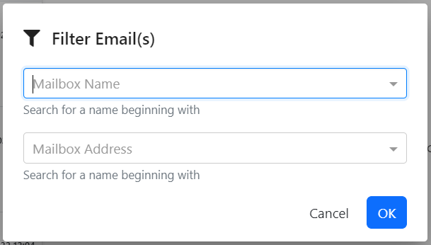Az ebben a részben lévő e-maileket Ön a postafiók neve (ha ismeri azt), valamint a postafiók címe alapján szűrheti. Pontosabban ez az annak a postafióknak az e-mail-címe, amely a beérkező üzeneteket kezeli.